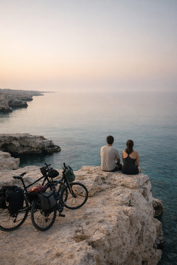 Camminiamo lentamente, spesso in bicicletta, attraversando strade secondarie, centri storici vuoti, scogliere chiare e campagne segnate dal tempo. Incontriamo persone che custodiscono saperi antichi, luoghi che non chiedono di essere fotografati, ma solo rispettati.